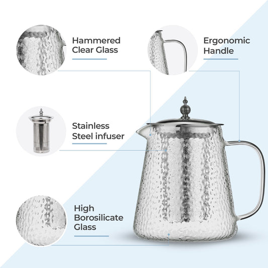 Silver Hammered Borosilicate Glass Teapot 900ml