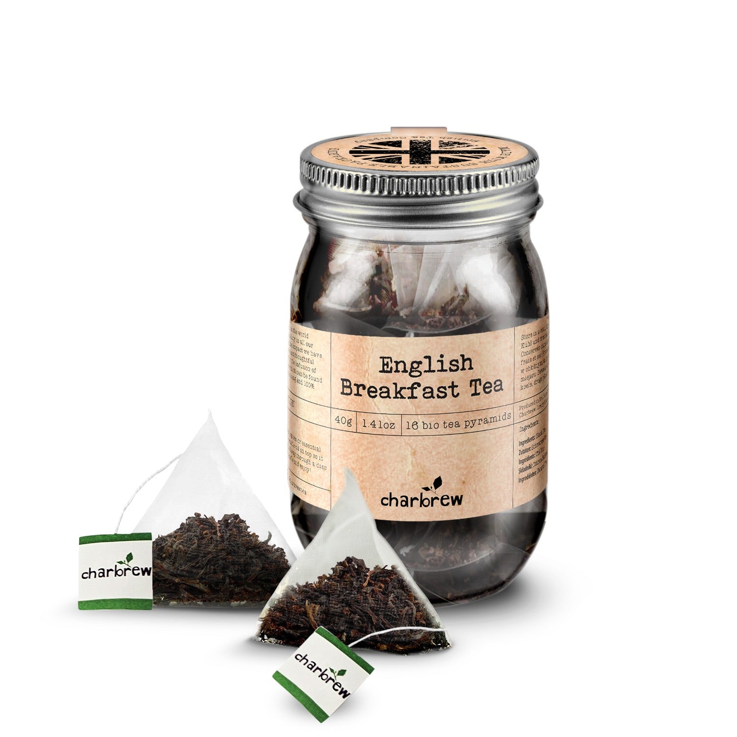 English Breakfast Tea Bags Mason Jar - 16 Biodegradable Pyramid Bags