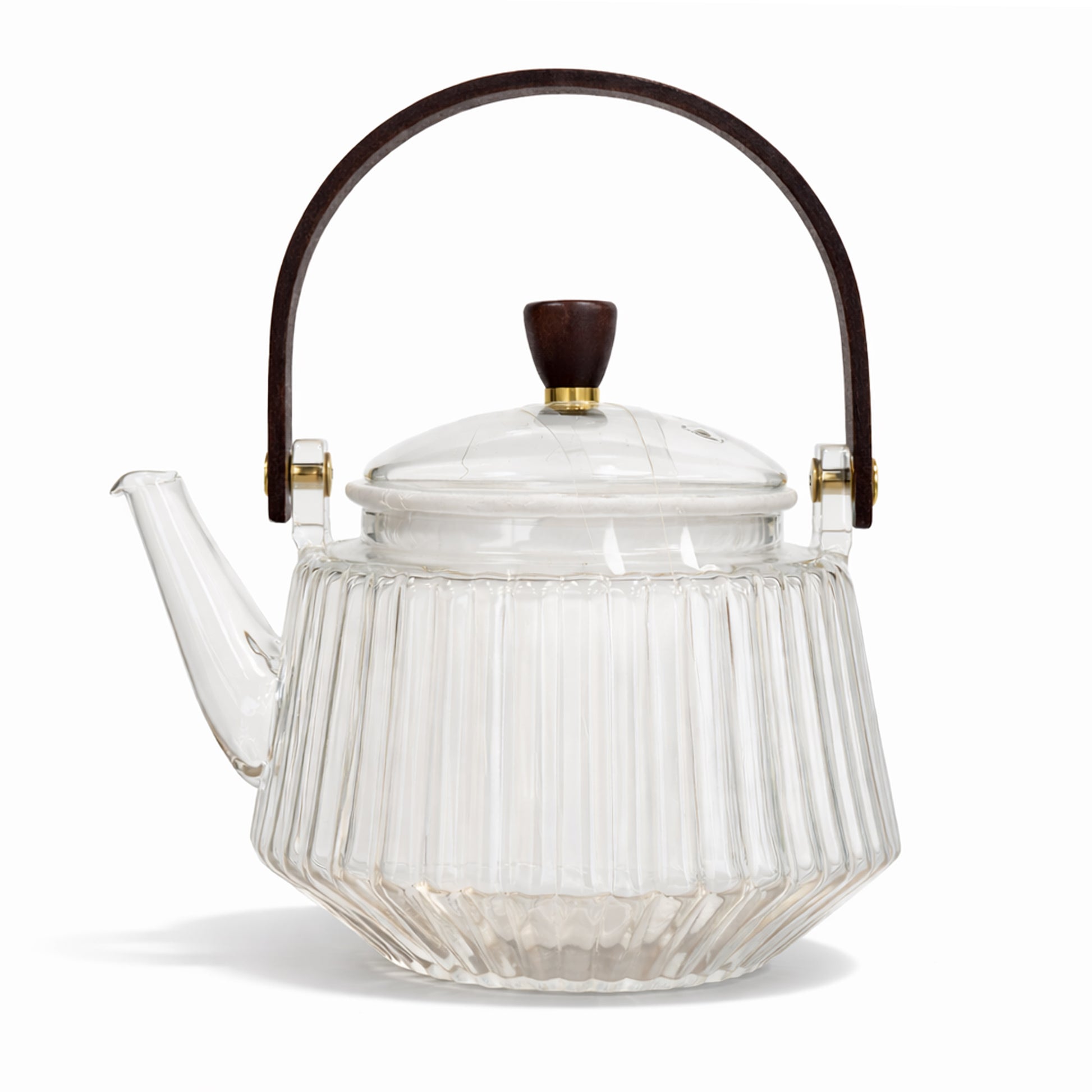 Striped Borosilicate Glass Teapot With Wooden Handle 900ml